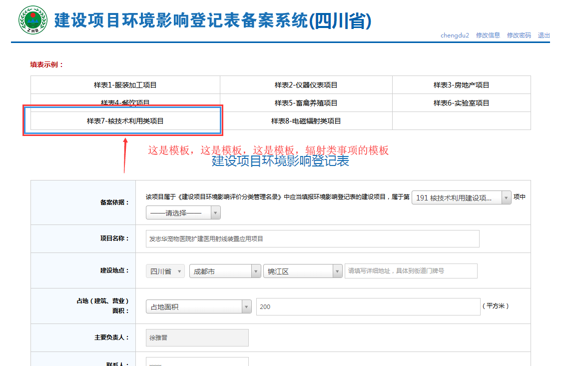 一、填报[成都市生态环境局分站点-备案登记系统](http://www.sczwfw.gov.cn/jiq/front/transition/ywTransToDetail?areaCode=510100000000&itemCode=511Z16015001-510100000000-000-11510100009172503B-1-00&taskType=10&deptCode=4222222222)