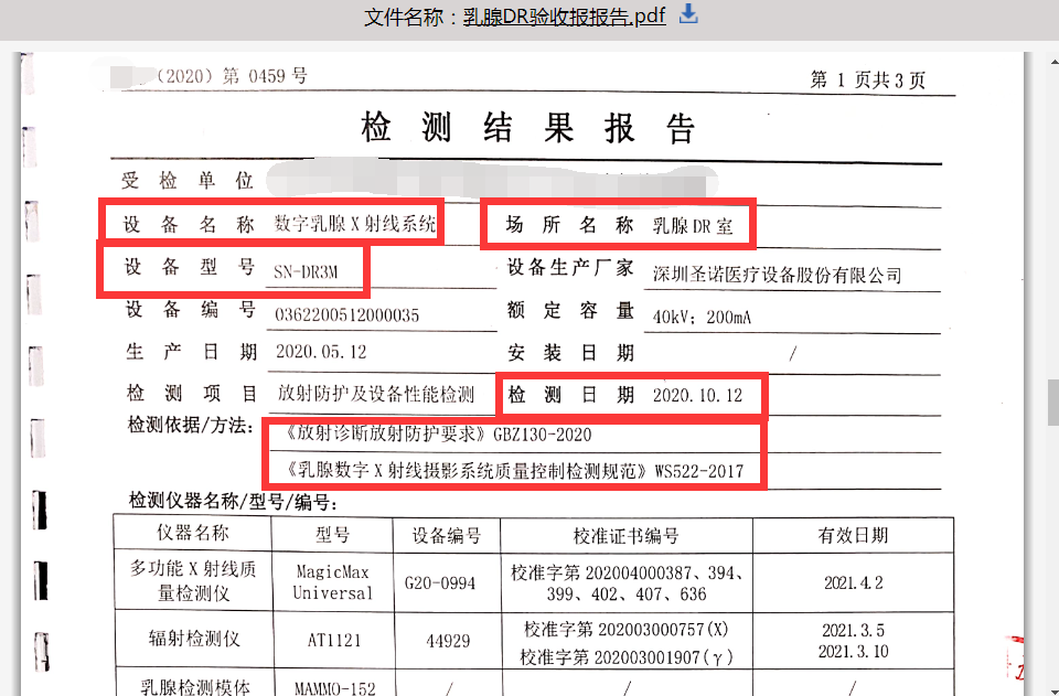 这类检测报告,报告包括受检设备基本参数,名称,型号,使用位置等。